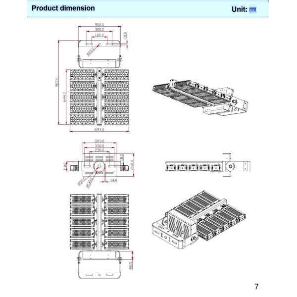 high lumen LED flood light 1200w, 180-528VAC, 6500K,198200lumen, IP66, 170lm/w