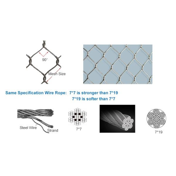 Cable Diameter:1/8", 3/32", 1/16", and 3/64".Mesh Size:1"x 1",