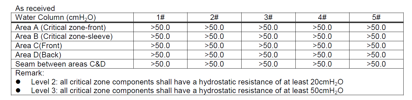 Liquid barrier Performance and Classification for protective