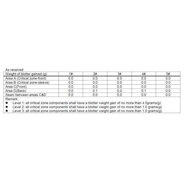 :60mbar/min;Distilled water temperature :21℃, fabric facing water