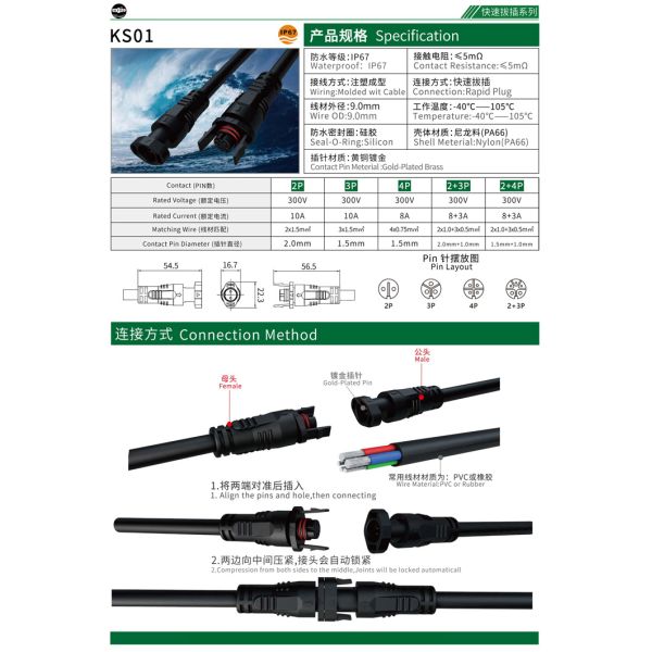 | Cable diameter | 9.0mm | Work temperature | -40°C~105°C | |