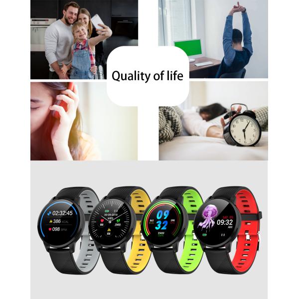 | DIY watch face, Message push, Call reminder, Daily alarm clock, Camera & Music control, Weather information, WeChat sport | ||