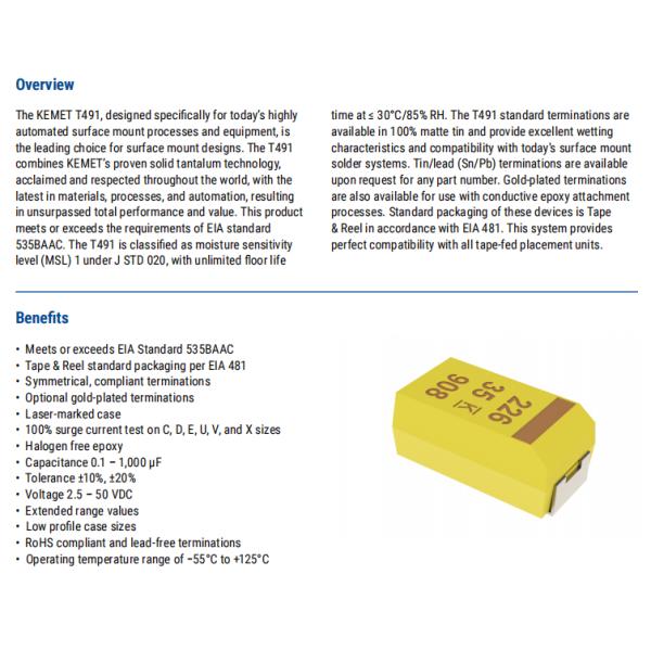 Tantalum Capacitors - Solid SMD 4V 10uF 1206 10% ESR=6Ohms 125°C T/R - Tape and Reel