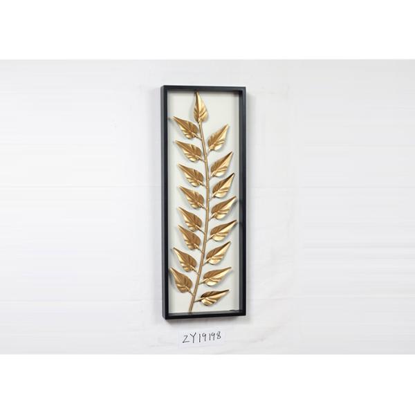 Metal Gold Leaves Black Rectangle Wooden Frame Wall Art Decoration For Home Gallery Hotel