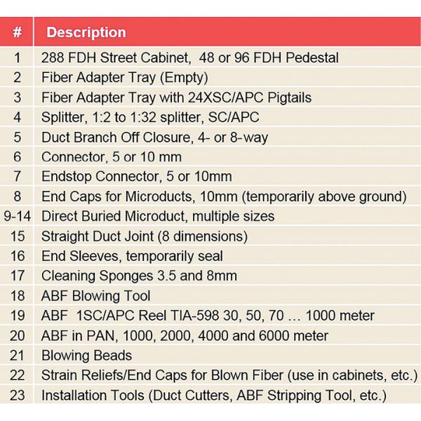 Air Blow Fiber (ABF) system consists of micro-tubes (single micro-tubes and micro-tubes), micro-cables, fittings and air blowing equipment. ABF systems claim to offer reduced cost, increased design flexibility and other advantages that cannot be matched by conventional optical fiber cables.