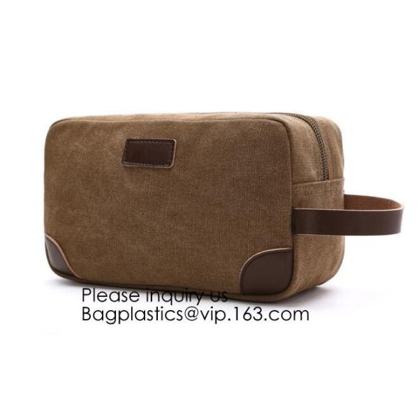 Small vintage canvas cosmetic makeup bag, men travel toiletry bag