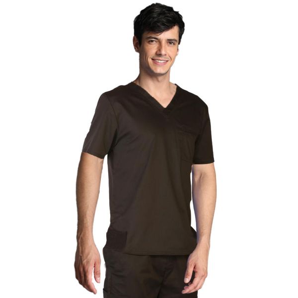180 GSM Polyester / Cotton / Spandex Brown Short Sleeve Medical Uniform Scrubs For Nurse