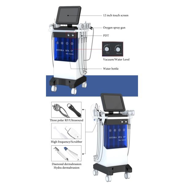 Handles | water dermabrasion with 8 tips Bio microcurrent 1 piece Vacuum pen 3 different sizes Photon light with 4 handles Spray mist gun 1 piece |
