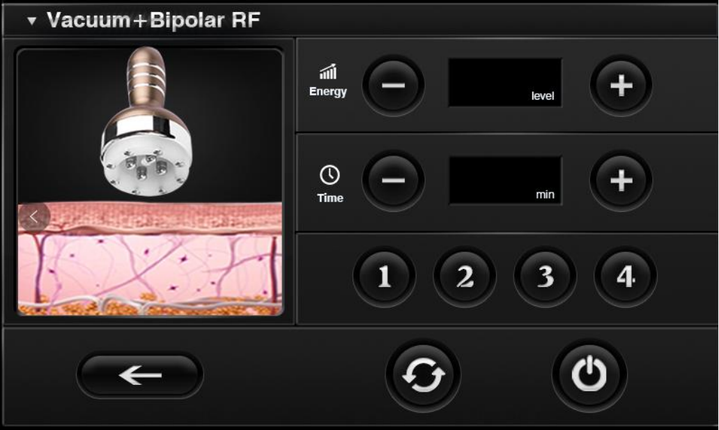 | Technology: | RF+vacuum, cavitation, bio-RFm, lipolysis combination |