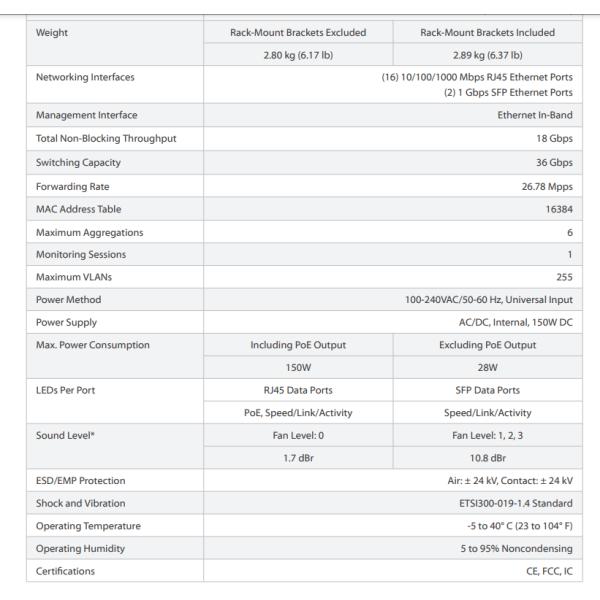 US-16-150W Managed PoE+ Gigabit Switches with SFP