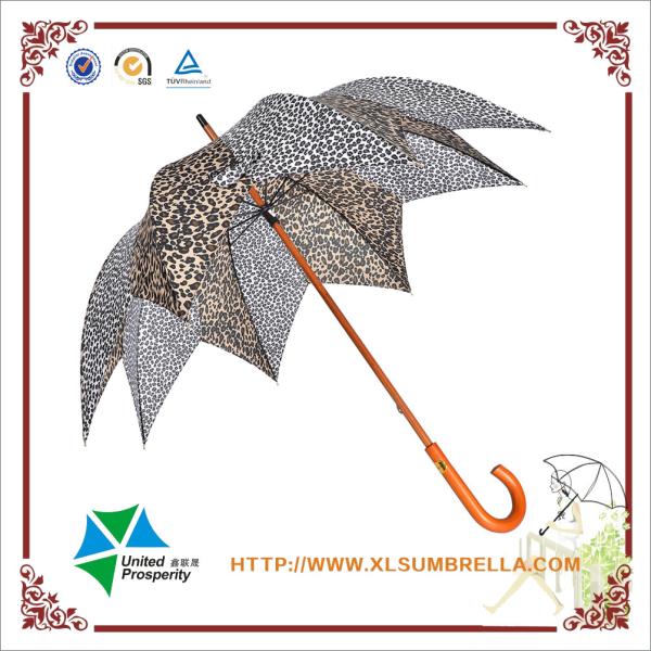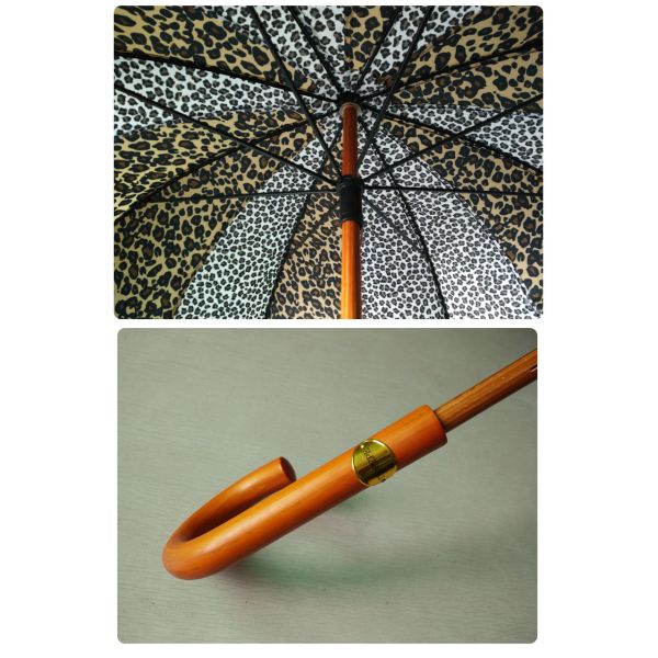 Color Change Leaf Umbrella with Leopard Print Wooden J Handle Special Umbrella for Women