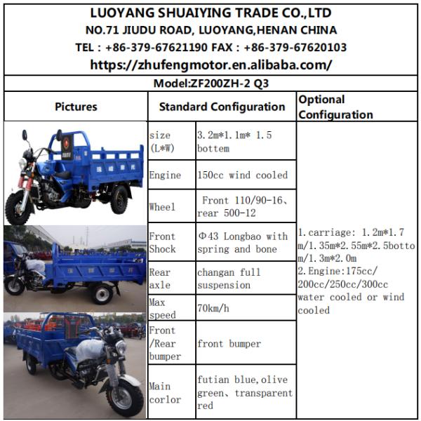 Carriage size(L*W) 1.1m*3.2m 1.5 bottem /Engine 150cc wind cooled