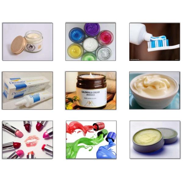 Suitable for production of ointment and cream products in cosmetic and pharmaceutical plants. The emulsifying effect is more prominent for materials of high base viscosity and high solid content.