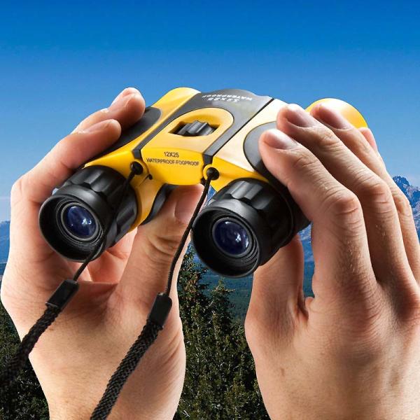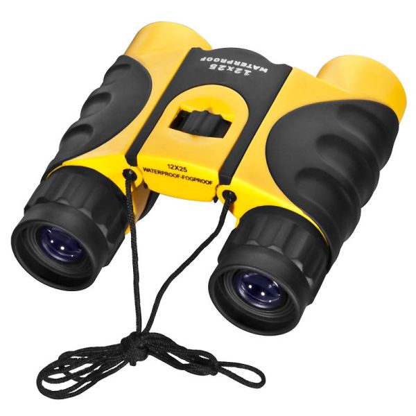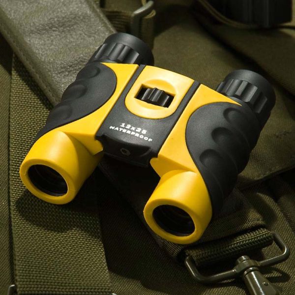 Yellow 12x25 Waterproof Binoculars are a handy, waterproof optic that can be useful for a wide range of outdoor activities in all weather conditions. The fixed 12x magnification is ideal for mid-range bird watching, hiking, or sightseeing, and lightweight enough to hold steady. Fully coated optics transmit bright clear images throughout the entire focus range, and the yellow armored housing helps protect your optics from moisture and light shock. The ergonomic design and complementing features of this binocular delivers a comfortable user-experience and quality images.