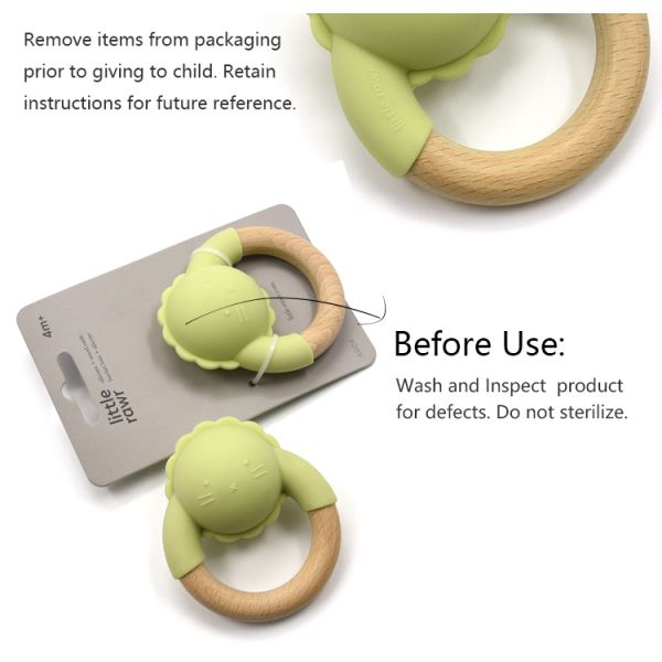 • silicone Wood Rattle is a teething rattle that includes Wood ring and a Silicone Rattle ball sound to entertain baby