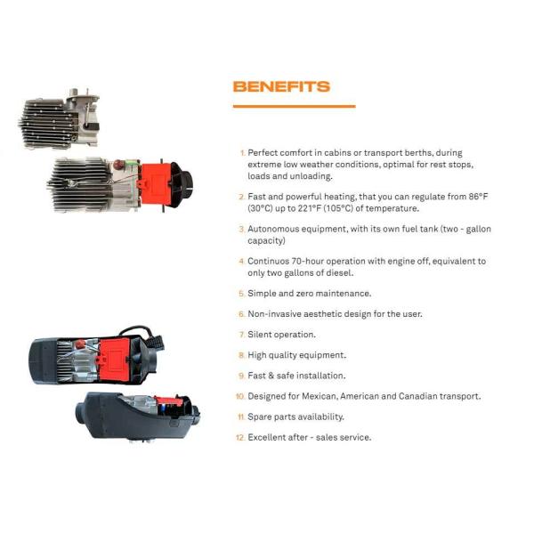 With compact design, the air heater tank is for easy installation for interior or even under the floor. Due to the low fuel and power consumption, it is suitable for longer periods of operation. It heats up fast and helps you get warm quickly when it is cold outside.