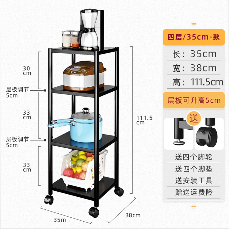 Stainless Steel Kitchen Shelf Floor Microwave Rack Oven Cooker Refrigerator Slot Storage Rack Multi-Layer