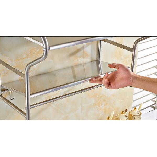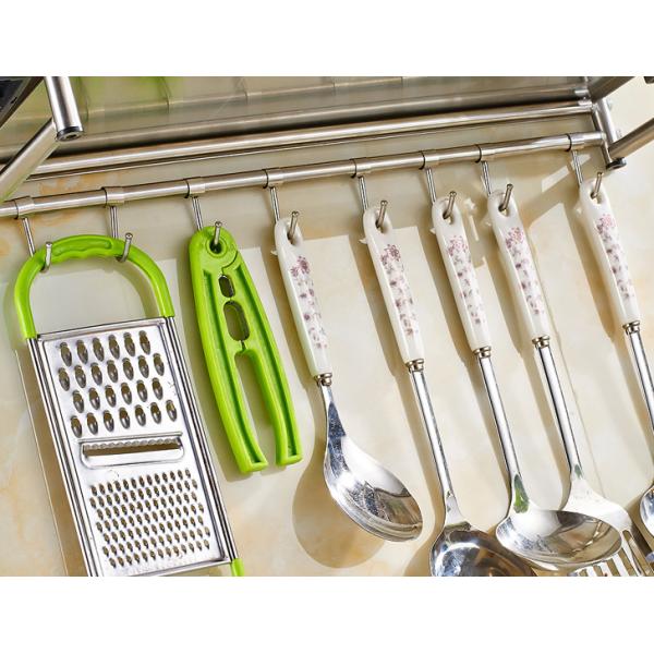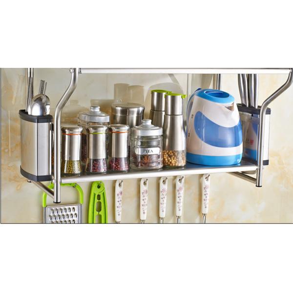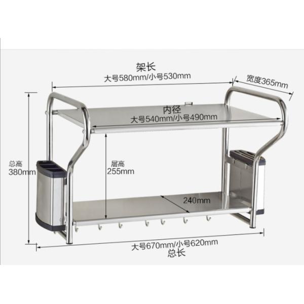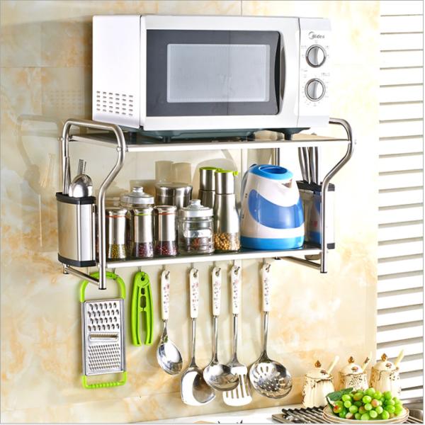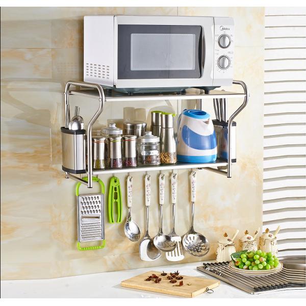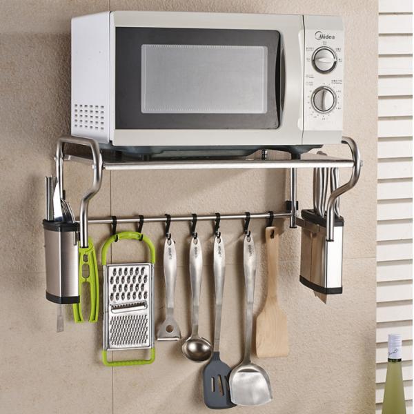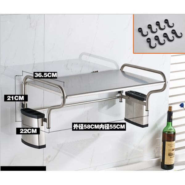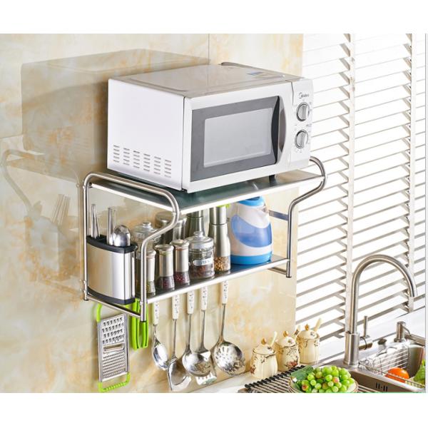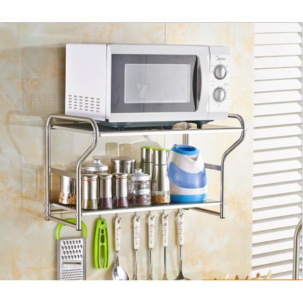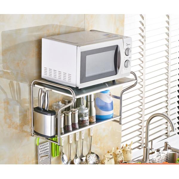 | Feature | Wall Mounted Microwave Rack made of stainless steel material,Super load-bearing, can load 20 KG, with movable hooks, thickening rod to prevent sliding, wire drawing process to prevent corrosion and rust, punching process |