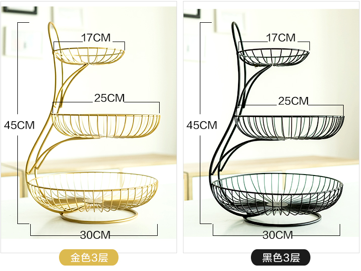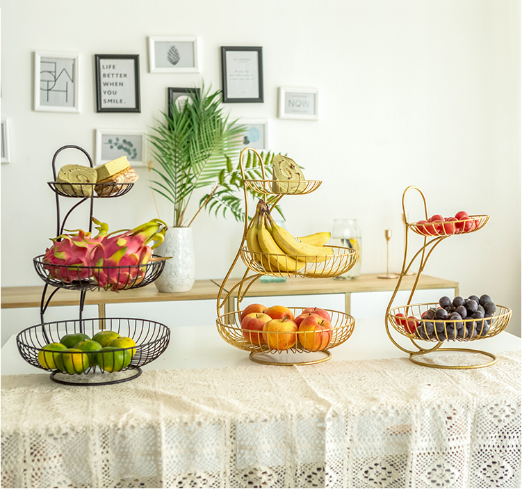 luxury nordic iron three-layer fruit tray creative modern living room snacks tray personality multi-layer fruit basket