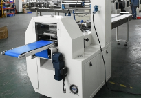 Feeding conveyor: Worker manual to put product on feeding conveyor, product will go through to film directly.