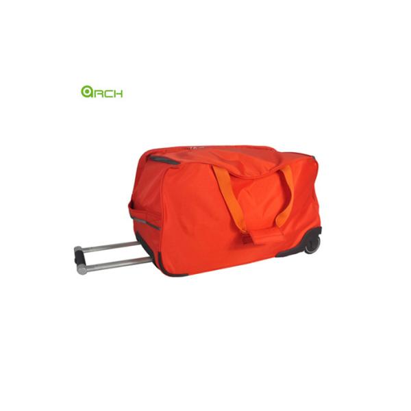 This wheeled duffel will protect your belongings on the toughest trips. Built with long-lasting, ultra-durable tapestry material, this duffel features a pair of large skate wheels, elegant trolley system.