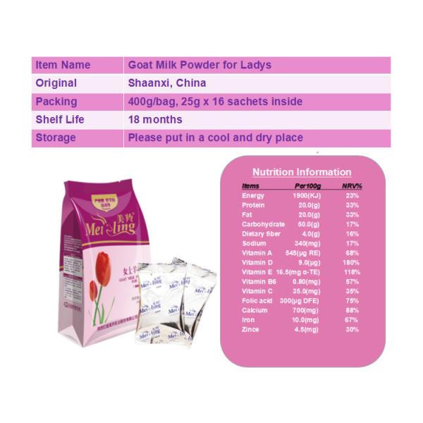 Meiling lady non-sucrose goat milk powder, specially for the beauty of women tailored.Using 100% pure fresh goat's milk from meiling self-built automatic milk source base as raw material, the low temperature wet process keeps the natural active nutrition ingredients of goat's milk, EGF, SOD, VC, VE and other ingredients as oil for beauty.At the same time, strengthen iron, meet women's demand for iron, nutrition is not afraid of fat, more delicate skin.
