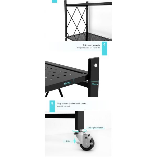 | Product name: | Home Kitchen 4 tiers metal Folding store shelf With 4 Wheels |