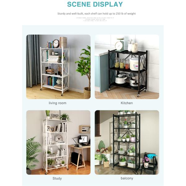 good at assembling can use it quickly and effortlessly. This steel Foldable Shelving Rack usually use at the kitchen, living room, ect.