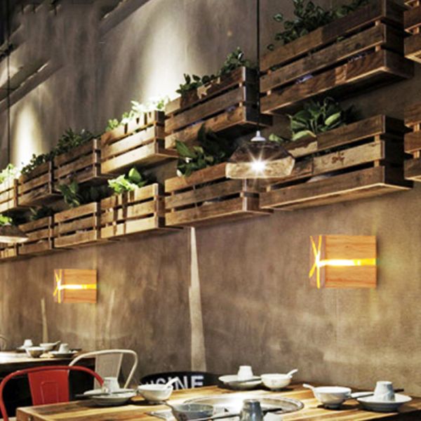 Loft Industrial Retro Indoor home decor Wall light cube wood wall lamp (Wh-VR-94)
