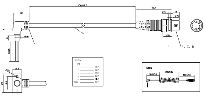 Din Connector 5PIN To 6PIN Cable-Tail Cable Length: 1500±20