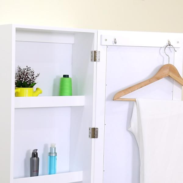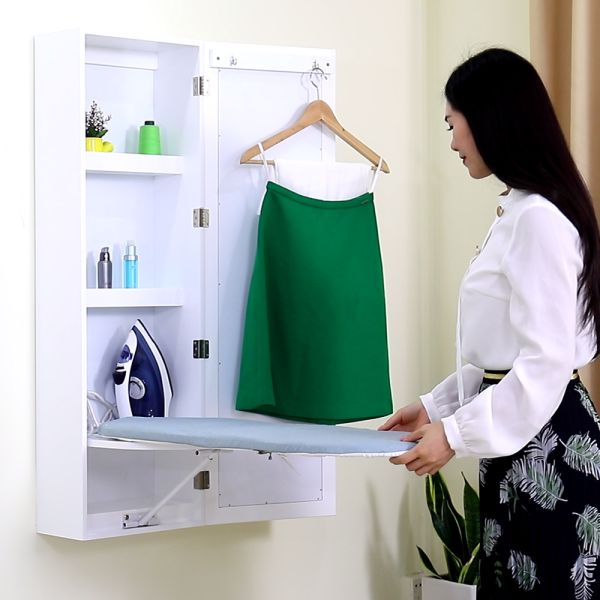 1. Wooden iron wardrobe with built-in iron board can be folded; wall mirror with hook;