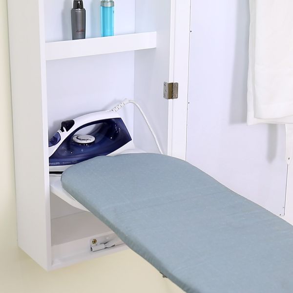 MDF Board White Wall-Mounted Mirror Ironing Board Cabinet For Bedroom