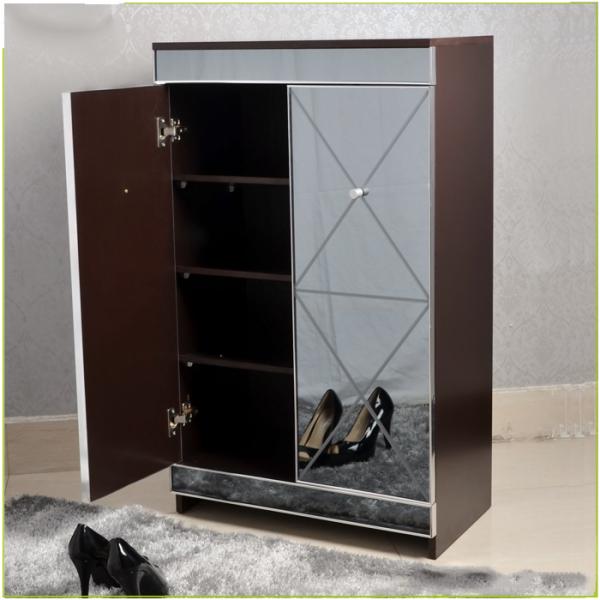 Brown Solid Wood Products Mirror Shoe Cabinet For Living Room
