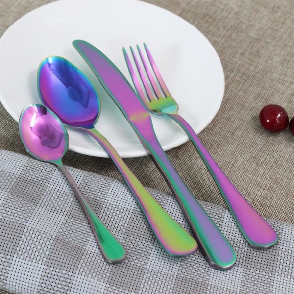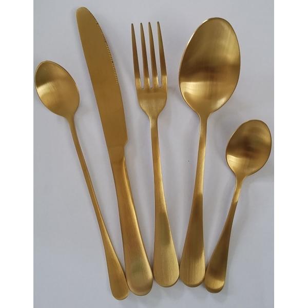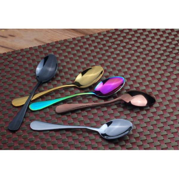Whole PVD coating process includes cleaning, baking, coating, inspecting and packing. Popular PVD coating color for cutlery is gold, rose gold, gray and black. Except above colors, we can also get silver, blue, rainbow color. PVD coating is applying to stainless steel cutlery recent years because of its nice decorative colors, higher selling value and longer using life.