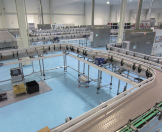 The layout of equipment is flexible different types of chain boards can be selected according to the conveying products to complete horizontal,turning and inclined conveying;Single row conveying can be used for beverage labeling,filling,cleaning and so on.Multi-row conveying can meet the requirements of a large number of feding materials for sterilizers,bottle buffering and bottle cooler;