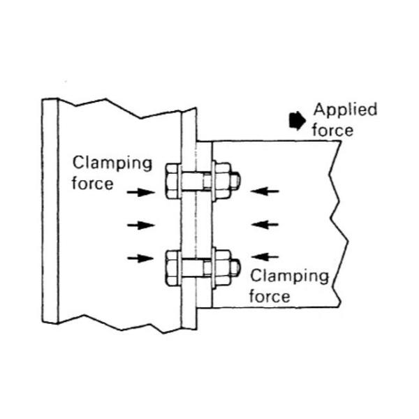 THEORY OF PRELOADED BOLTING ASSEMBLIES The principle of Preloaded bolted connections relies upon tensioning each bolt in the connection to a specified minimum preload so that the required clamping force will be induced at the connection interface. Shear loads are then transferred by frictional resistance at the joint interface rather than by bearing on the bolt shanks and hole faces. In this type of connection there will be no movement of the connected materials when the connection is subjected to these loads.
