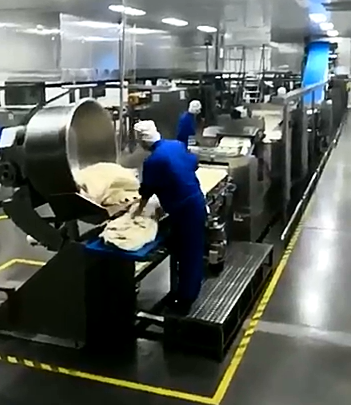 Either the air/gas proportional controlled direct heated tunnel oven or air circulation type indirect heated tunnel oven can be used for baking. After baking, automatic de-lidding is done, after which the suction depanner/needle depanner/flip –over depanner will take the products out from moulds. The baked products are cooled by spiral cooler and the empty pans return through the pan cooling tunnel to the dough positioning and panning machine. And enter into next cycle. In addition to the slicing machine and drying oven, the line is suitable for producing bread rusk.