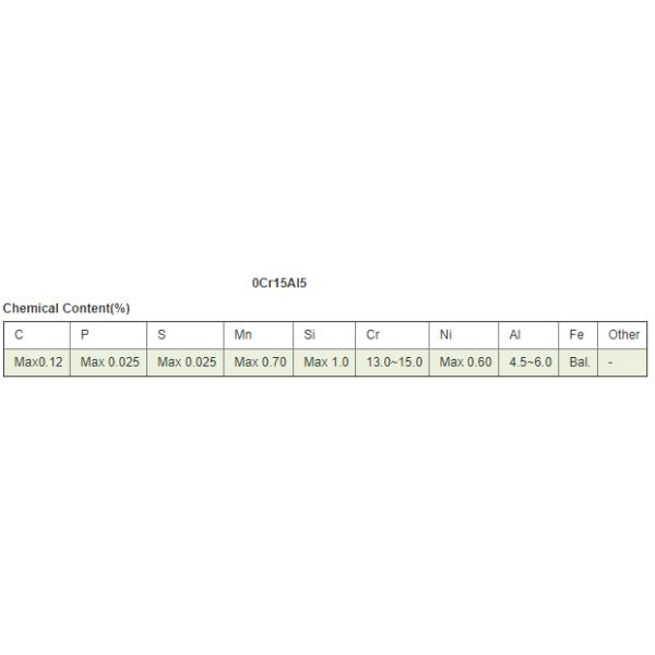 | composition: | Fe Bal, Cr 15%, Al 5% |