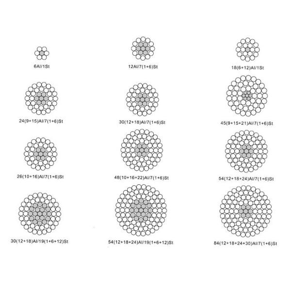 - Al/St 6/1, 7/1, 8/1, 12/7, 16/19, 18/1, 24/7, 26/7, 30/7, 30/19, 36/1, 54/7, 54/19, 72/7, 76/19, 84/19.