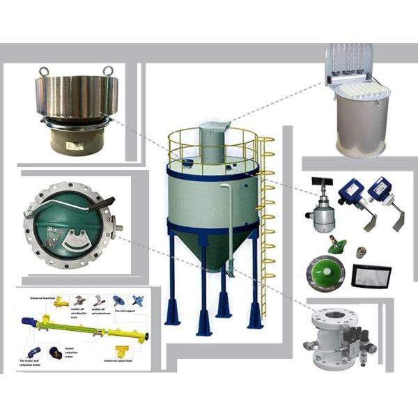The industrial silo storage is generally divided into 3 parts, the powder cement silo top cover, the silo body, and the cone part. The accessories are composed of silotop filter, pressure relief valve, discharge valve, level indicator, ladder, outrigger, guardrail, etc.