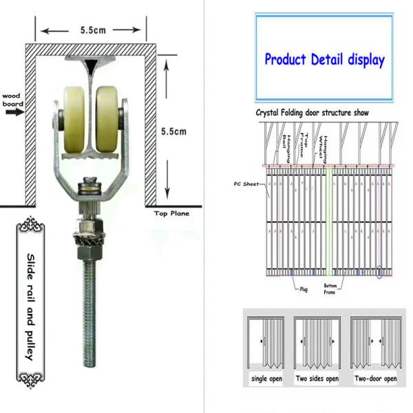 Polycarbonate folding door is a door with multiple folding fans which can be moved to the side to save space . It adopts the form of suspension rail installation and no need install the ground rail. According to the requirements of customer design that its track can be irregular and curve, which is a good companion for irregular high vision design. It can be used in workshop, market, office building, exhibition hall and home decoration.
