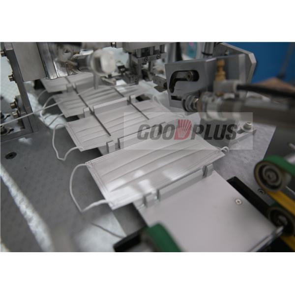 2. The face mask making machine adopted servo and constant temperature control system is controlled by PLC to make the material from coil material loading, folding and pressing, nose rib loading, mask forming, mask cutting, ear band loading and welding, finished product unloading, complete the whole set of production process fully automatic operation;