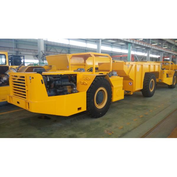 front facing drive that is comfortable for long distance travel. It has a compact dimension and turning radius, large dumping angel. With a DEUTZ Engine F8L413FW rated power 136 Kw, it’s also equipped with international brand components to meet various challenges in underground mining.