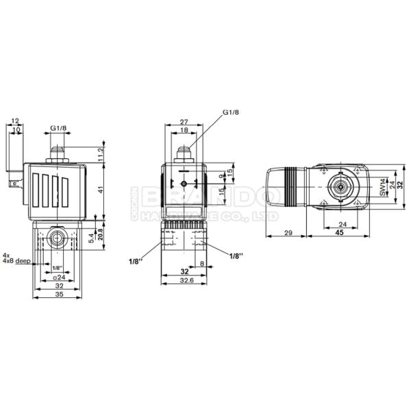 6014 Type G1/8'' 3/2 Way Normally Closed Direct Acting Plunger Brass Solenoid Valve