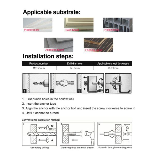 | Usage: | First,we need to use electric drill to drill specific size of the hole. |