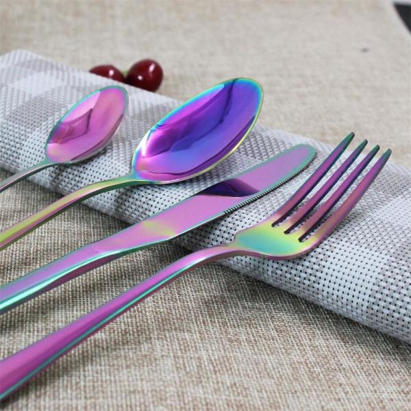 PVD cutlery is safe for human body because we are using titnaium target to coat. Titanium is acceptable for human body. We can use PVD cutlery to eat directly. We can also make PVD cutlery as artwork for decoration.