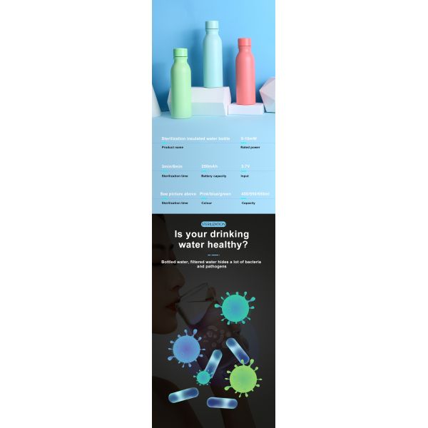 650Ml SS304 Uv Sterilizer Water Bottle With PP Lid