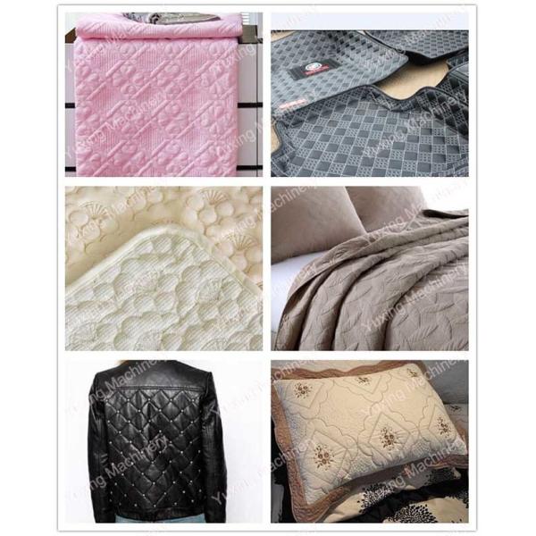 The quilting with embroidery machine sews fabric and wadding together for garments like jacket, for home textile like quilts,blanket, bedspread, handbags, pillow case; or sews leather / PVC / PU with foam together for car interior like car mat, car seat cover, etc.