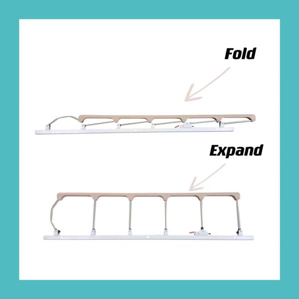 The korean type hospital guard rails folding switch is located on the lower iron square tube, safe and easy to operate.