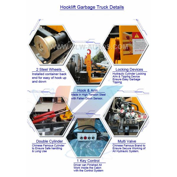 2. Garbage Bin with different size options of hook lift garbage truck : 4cbm to 12cbm;: Engine 266hp,290hp,336hp,371hp, Fast Gearbox 6Forward & 2Reverse;